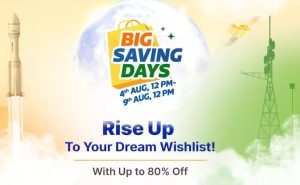 नई दिल्ली: फ्लिपकार्ट पर बिग सेविंग डेज़ का ऐलान हो गया है. सेल की शुरुआत 4 अगस्त से होगी और ये 9 अगस्त तक चलेगी. सेल में ग्राहकों को अलग-अलग प्रोडक्ट पर 80% तक छूट मिलेगी. इस सेल को इंडिपेंडेंस डे के मौके पर आयोजित किया जा रहा है. सेल में खरीदारी करने पर फ्लिपकार्ट बैंक क्रेडिट कार्ड 5% की छूट पाई जा सकती है, और फ्लिपकार्ट एक्सिस बैंक सुपर एलाइट कार्ड पर 8% का सुपरकॉइन हासिल किया जा सकता है.