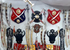 उज्जैन। कालिदास अकादमी के हस्तशिल्प मेले में खुलेआम हथियार बेचे जा रहे हैं। बाहर से आये एक व्यापारी मेले के बीचों-बीच दुकान का आवंटन करवाकर तलवारें बेच रहा है।