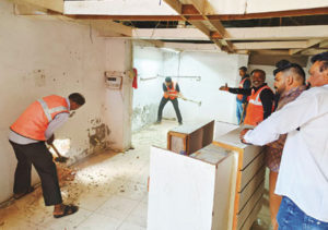 पाकीजा शो रूम के सबसे उपरी मंजिल पर आस पास के हिस्सों में किए गए अवैध निर्माण देखकर अफसर भी हैरत में पड़ गए थे क्योंकि वहां जगह-जगह कहीं कमरे तो कहीं गोडाउन तो कहीं शोरूम का अटाला पटक रखा था। वहा जाने की भी जगह नहीं थी जिसके चलते कर्मचारियों ने अटाला एक तरफ किया जब कार्रवाई शुरु हो सकी। बिजली के तारों के कारण कोई हादसा नहीं हो इसके लिए अधिकारी कर्मचारियों को पूरी सावधानी से काम करने का निर्देश दे रहें थे, वहां कई कमरों के पतरों पर खड़े होकर जब तोडफ़ोड़ की जा रही थी तो कर्मचारियों को अफसरों ने फटकारा और उन्हें नीचे उतरकर दिवारों को तोडऩे के आदेश दिए, ताकि छत से कोई कर्मचारी हादसे का शिकार ना हो। पूरे समय अधिकारियों की टीम छत पर मौजूद रहकर कार्रवाई की निगरानी करती रही।