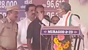 बेलगावी (कर्नाटक). कर्नाटक (Karnataka) के मुख्यमंत्री (CM) सिद्धारमैया (Siddaramaiah) सोमवार को उस समय गुस्से में आ गए, जब कुछ लोगों ने उनके भाषण (speech) के दौरान हंगामा किया। ये लोग कथित तौर पर भारतीय जनता पार्टी (BJP) के कार्यकर्ता थे। इस दौरान सिद्धारमैया ने गुस्से में मंच पर एक पुलिस अधिकारी को थप्पड़ (slap) मारने के लिए हाथ उठाया।