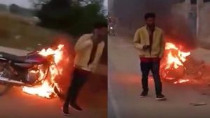 घटना का वीडियो इन दिनों सोशल मीडिया पर खूब वायरल हो रहा है।युवक की पहचान दिनेश विश्वकर्मा के रूप में हुई है जो कि गांव परसा का निवासी है। युवक ने बाइक में आग क्यों लगाई, यह अभी तक साफ नहीं हो सका है। हालांकि इस मामले में किसी प्रकार की कोई शिकायत दर्ज नहीं कराई गई है।