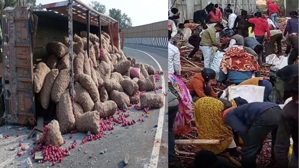 • हाईवे पर पलटा प्याज से भरा ट्रक, देखते ही देखते लूट ले गए ग्रामीण