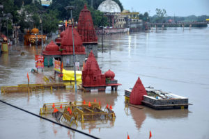 उज्जैन। कल रात साढ़े 8 बजे से शुरु हुई जोरदार बारिश लगभग आधे घंटे चली। इससे एक बार फिर शहर जलमग्न हो गया। कल शाम तक शिप्रा का जलस्तर छोटे पुल के लेवल को छू रहा था। लेकिन देर रात फिर इसके ऊपर करीब 4 फीट से शिप्रा बहने लगी। आज सुबह साढ़े 11 बजे तक भी छोटा पुल डूबा हुआ था और रामघाट से लेकर छोटो पुल तक सभी घाट और मंदिर जलमग्न नजर आ रहे थे। चक्रतीर्थ की ओर जाने वाला मार्ग भी बंद हो गया था। इधर गंभीर बांध में भी 24 घंटे में 24 एमसीएफटी पानी बढ़ गया था।