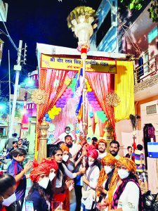 इन्दौर। वाल्मिकी समाज के लोग छड़ी निशान को तरह-तरह से सजाते हैं। सभी वाल्मिकी बस्तियों में छड़ी निशान का पूजन किया जा रहा है। इस बार चांदी महंगी होने के बावजूद कमाठीपुरा के छड़ी निशान को 11 किलो चांदी से सजाया गया है। निशान की सुरक्षा के लिए बकायदा यहां गनमैन को भी बैठा रखा है। चांदी का ये निशान वीर गोगा देव जी के प्रथम सेनापति रतन सिंह चावरिया को समर्पित किया त्याग और भक्ति के साथ वाल्मीकि समाज के सदस्य इस परम्परा को निभाते आ रहे हंै, लेकिन इस बार कोरोना काल के चलते सुरक्षा के साथ छड़ी निशान को भ्रमण कराया गया। अलग-अलग इलाकों में भी छड़ी निशान सजाए गए हैं।