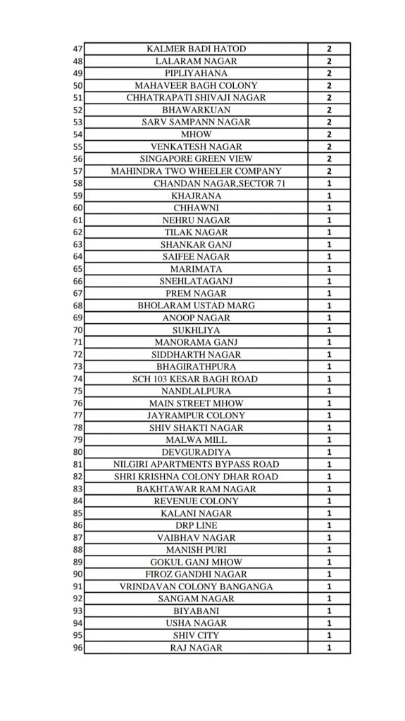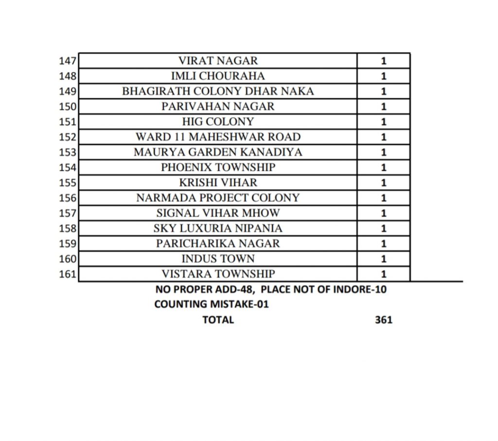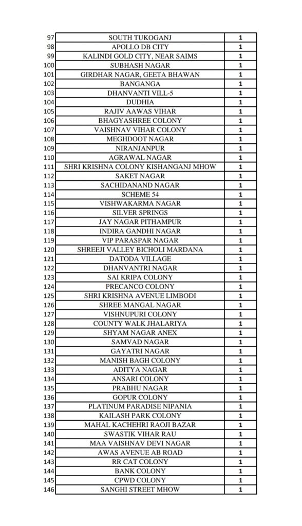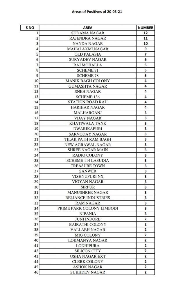 20 मार्च 2021: इंदौर के इन इलाकों मे है कोरोना के मरीज