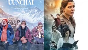 इस हफ्ते 11 नवंबर को सिनेमाघरों में हिंदी में पूरी आठ फिल्में रिलीज होने जा रही हैं, जिनमें दो फिल्में एक-दूसरे को जबरदस्त टक्कर देती नजर आएंगी। क्योंकि इन दोनों फिल्मों में बड़े-बड़े स्टार्स मौजूद हैं। इनमें से एक जहां साउथ की बेहतरीन अभिनेत्री सामंथा रुथ प्रभु की ‘यशोदा’ है, वहीं दूसरी बॉलीवुड के दिग्गज कलाकार अमिताभ बच्चन और अनुपम खेर की फिल्म ‘ऊंचाई’ है। इनके अलावा, 11 नवंबर को रितेश देशमुख की ‘मिस्टर मम्मी’, ‘अंत द एंड’, ‘थाई मसाज’, ‘रॉकेट गैंग’, ‘करतूत’ और ‘बधाई हो बेटी हुई है’ रिलीज हो रही है।