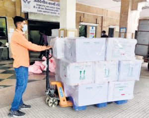 विमानतल (Airport) से मिली जानकारी के मुताबिक इंडिगो (Indigo) की दोपहर 12 बजे आने वाली पुणे फ्लाइट से पुणे स्थित सीरम इंस्टिट्यूट (Serum Institute) द्वारा भेजी गई कोविशिल्ड वैक्सीन (Covishield Vaccine) के कुल 37 बॉक्स इंदौर पहुंचे, जिसका वजन 1221 किलो था। एक बॉक्स में 1200 वाइल्स थी। इस तरह कुल 37 बॉक्स में 44400 वाइल्स में 4.44 लाख वैक्सीन के डोज थे। ये वैक्सीन डोज आसपास के जिलों में भी भेजेंगे?