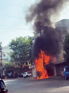 • बिजली ट्रांसफार्मर में स्पार्किंग से लगी आग, 15 मिनट तक उठती रही लपटें