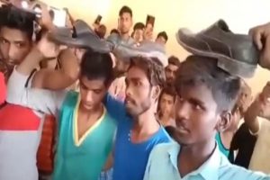 युवकों को दोषी पाए जाने पर पंचायत सदस्यों ने सिर पर जूते लिए गांव में घुमाया और गांव से 11 माह तक तड़ीपार (बाहर) रहने का आदेश भी दिया।घटना मंगलवार को गरखा थाना क्षेत्र के मिठेपुर पंचायत में हुई, जहां एक जाति विशेष का वर्चस्व है और पंचायत सदस्य भी इसी से ताल्लुक रखते हैं। कुछ दिन पहले फेसबुक पर लाइव आने के बाद युवकों पर जातिसूचक गाली देने का आरोप लगा है।