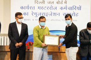 नई दिल्ली । दिल्ली जल बोर्ड (Delhi Jal Board) में कार्यरत 700 संविदा कर्मचारियों (700 Contract Employees) को आज नियमित किया गया (Were Regularized) है। दिल्ली के मुख्यमंत्री अरविंद केजरीवाल (CM Arvind Kejriwal) ने कर्मचारियों को पक्का होने का सर्टिफिकेट सौंपा (Handed Over Certificate) और कहा कि, दिल्ली राज्य बनने के बाद इतने बड़े स्तर पर कच्चे कर्मचारियों को कभी पक्का नहीं किया गया। अब पूरे देश में यह मांग उठेगी कि जब दिल्ली में हो सकता है, तो उनके यहां क्यों नहीं हो सकता?