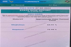 नागालैंड विधानसभा चुनाव में कड़ी सुरक्षा के बीच 60 में से 59 सीटों पर सोमवार को शाम 5 बजे तक करीब 81.94%मतदान हुआ। अपने-अपने मताधिकार को प्रयोग करने लोग बड़ी संख्या में मतदान केंद्रों में पहुंचे। नागालैंड में 60 में से 59 विधानसभा सीटों पर सुबह 7 बजे मतदान शुरू हुआ अधिकांश मतदान केंद्रों के सामने बड़ी संख्या में पुरुष, महिला और पहली बार के मतदाता कतार में लग गए। 11,500 मतदान कर्मचारियों द्वारा संचालित 2,291 मतदान केंद्रों पर मतदान हुआ। वोटों की गिनती दो मार्च को मेघालय और त्रिपुरा के साथ होगी।