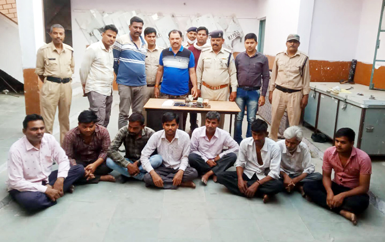 तराना। पुलिस कप्तान सत्येन्द्र कुमार शुक्ल के मार्गदर्शन में क्षेत्र में अवैध जुए एवं सट्टे के कारोबार के खिलाफ कार्रवाई लगातार की जा रही है। इसी क्रम में पुलिस को मिली सूचना के आधार पर नगर के खांकरीपुरा में एक मकान पर दबिश दी गई जहां सट्टा अंक पर्ची लिखते एवं हाजर सट्टा खेलते आठ लोगों को गिरफ्तार किया गया। टीआई भीमसिंह पटेल के निर्देशन में गठित टीम मे एएसआई बाबूलाल चौधरी, आरक्षक दामोदर शर्मा, अनिल यादव, राम सोनी, मनीष, हेमराज एवं आदित्य के साथ कार्रवाई को अंजाम दिया।