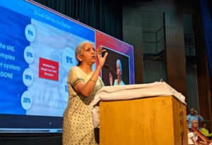 निर्मला सीतारमण ने कहा कि जीएसटी की दरों की समीक्षा की जरूरत इसलिए पड़ी, क्योंकि इसका मकसद था मध्यम वर्ग और किसानों को फायदा पहुंचाना। साथ ही एमएसएमई यानी सूक्ष्म, लघु और मध्यम उद्यमों के लिए भी यह जरूरी था कि उन्हें राहत मिले। उन्होंने यह भी कहा कि अंततः जीएसटी सुधार का अंतिम मकसद पूरे देश की अर्थव्यवस्था के व्यापक हित में था। वित्त मंत्री ने कहा कि भविष्य में संभव है कि जीएसटी की एक एकल दर हो। उन्होंने यह भी स्पष्ट किया कि हाल ही में जैसलमेर में हुई जीएसटी काउंसिल की बैठक में उत्तर प्रदेश सरकार के अनुरोध पर कुछ दरों की समीक्षा की गई। ऐसा इसलिए किया गया क्योंकि जमीनी स्तर पर कुछ गड़बड़ियां थीं, जिन्हें दूर कर अनुपालन को आसान बनाया जा सके। इस प्रक्रिया में भी कई सुधार किए गए हैं।