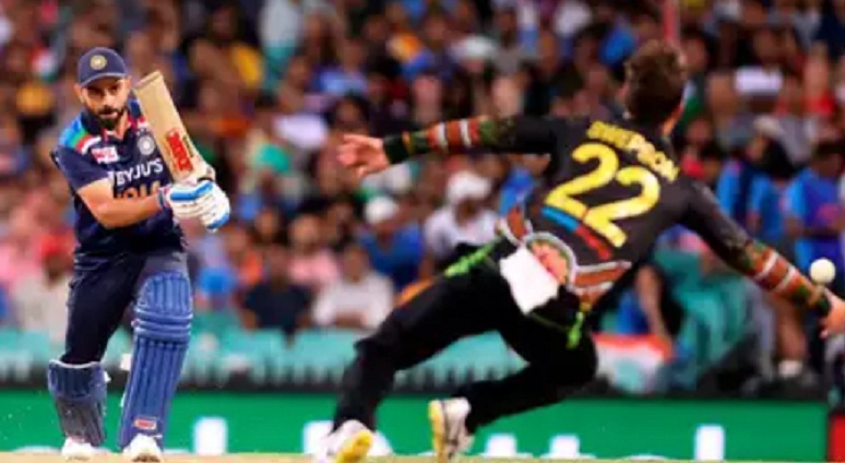 सैम्स ने लाजवाब कैच लेकर कोहली को वापस भेजा। इसके बाद वाशिंगटन सुंदर भी 7 रन बनाकर चलते बने। शार्दुल ठाकुर 17 और दीपक चाहर बिना खाता खोले नाबाद लौटे। भारतीय टीम 20 ओवरों में 7 विकेट पर 174 रन ही बना सकी। ऑस्ट्रेलिया की तरफ से मिचेल स्वॉपसन ने तीन,ग्लेन मैक्सवेल, शेन एबॉट,एंड्रयू टाय और एडम जाम्पा ने 1-1 विकेट लिया।