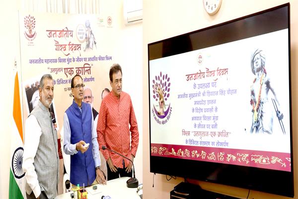 भोपाल। मुख्यमंत्री शिवराज सिंह चौहान (Chief Minister Shivraj Singh Chouhan) ने आज “उलगुलान-एक क्रांति” (Ulgulan – a revolution) फीचर फिल्म (“feature film”) को डिजिटली रिलीज किया। मुख्यमंत्री श्री चौहान द्वारा जनसंपर्क विभाग के पोर्टल पर डिजिटली रिलीज किया गया। निवास पर आयोजित कार्यक्रम में प्रसिद्ध अभिनेता श्री नितीश भारद्वाज, फिल्म के निर्माता, निर्देशक श्री अशोक शरण, आयुक्त जनसंपर्क डॉ. सुदाम खाडे़ उपस्थित थे। श्री अशोक शरण ने जनजातीय जीवन पर लगभग 200 लघु फिल्मों का निर्माण किया है।