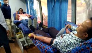 इंदौर। मध्यप्रदेश में आगामी विधानसभा चुनाव को लेकर लगातार विरोध स्वरूप शासकीय कर्मचारी अपनी माँगो को लेकर विरोध स्वरूप प्रदर्शन कर रहे है, वेतन विसंगति और अन्य माँगो को लेकर पटवारी संघ अनिश्चितक़ालीन हड़ताल पर है। पटवारी संघ लगातार अलग अलग तरीकों से सरकार के सामने अपना पक्ष रख रहा है। हड़ताल के 22 वें दिन धरना स्थल पर ही रक्तदान शिविर का आयोजन किया गया। इस दौरान 80 यूनिट रक्त का दान किया गया। कई पटवारियों ने रक्तदान किया।