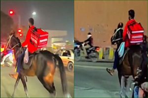 जोमैटो बैग पहने डिलीवरी बॉय को पुराने शहर के चंचलगुडा इलाके में इंपीरियल होटल के पास एक सड़क पर घोड़े की सवारी करते देखा गया। उनकी मोटरसाइकिल का पेट्रोल खत्म होने के बाद उनके मन में यह अनोखा विचार आया।