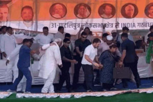 पालीगंज में कांग्रेस नेता राहुल गांधी की जनसभा के दौरान मंच टूटा – मीसा भारती ने संभाला । कांग्रेस नेता राहुल गांधी पटना साहिब, पाटलिपुत्र और बख्तियारपुर में चुनावी सभा को संबोधित किया। वहीं इस दौरान पालीगंज में राहुल जिस मंच से भाषण दे रहे थे उस मंच का एक हिस्सा धंस गया, वहीं राजद प्रत्याशी मीसा भारती ने राहुल गांधी का हाथ पकड़ उन्हें संभाला। वहीं राहुल इस दौरान भी मुस्कुराते हुए लोगों का अभिवादन करते दिखे।थोड़ी देर में सुरक्षाकर्मी भी आ गए, लेकिन राहुल ने कहा मैं ठीक हूं। इस घटना का वीडियो तेजी से वायरल हो रहा है।
