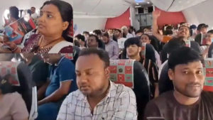 दरअसल दिल्ली से दरभंगा (एसजी 486) जाने वाली स्पाइसजेट के यात्रियों को तपतपाती गर्मी के बीच एक घंटे से ज्यादा समय तक बिना एयर कंडीशनिंग के विमान के अंदर इंतजार करना पड़ा. जिससे कई लोग अस्वस्थ महसूस करने लगे. यात्री फ्लाइट के टेक ऑफ होने का इंतजार कर रहे हैं. वीडियो में देखा जा सकता है कि किस तरह से फ्लाइट में बैठे लोग एसी बंद होने की वजह से गर्मी में परेशान हो रहे है. यात्रियों से भरी फ्लाइट में हर कोई अपने हाथों से हवा करता नजर आ रहा है तो कोई पसीना पोछता दिख रहा है. टिकट का इस्तेमाल पंखे के रूप में किया जा रहा है. यात्रियों के चेहरे पर परेशानी साफ नजर आ रही है.