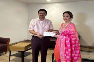 बाबा विश्वनाथ, मां अन्नपूर्णा और मां विशालाक्षी को बेटे अनंत की शादी का कार्ड देने पहुंचीं नीता अंबानी ने श्री काशी विश्वनाथ मंदिर के लिए 1.51 करोड़ रुपये का दान दिया। उन्होंने मंडलायुक्त कौशल राज शर्मा को चेक सौंपा। इसके साथ ही नीता अंबानी ने अन्नपूर्णा मंदिर के लिए भी एक करोड़ रुपये का चेक दिया। उन्होंने श्री काशी विश्वनाथ मंदिर में स्वयं शादी का कार्ड चढ़ाया। मां अन्नपूर्णा जी और विशालाक्षी जी के लिए मंडलायुक्त के माध्यम से कार्ड भिजवाया।