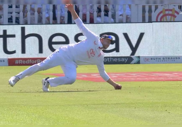 परिणाम ये रहा कि गेंद उनके बल्ले का बाहरी किनारा लेते हुए पहले स्लिप में तैनात रूट की दिशा में चली गई. जहां इंग्लिश दिग्गज ने छलांग लगाते हुए एक हाथ से गेंद को पकड़कर सबको हैरान कर दिया।