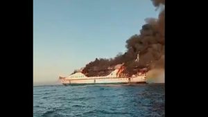 अल लपटें नाव से तेजी से फैल गईं, सवार लोगों को पानी में शरण लेने के लिए मजबूर होना पड़ा। घटना स्थल के विभिन्न वीडियो में कुछ यात्रियों और चालक दल के सदस्यों को तैरती हुई वस्तुओं को पकड़ते हुए दिखाया गया है, जबकि अन्य व्यक्ति खुद को बचाने के लिए बचाव राफ्ट का उपयोग कर रहे हैं, क्योंकि हवा में धुएं का गुबार उठता है।