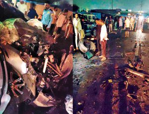 कनाडिय़ा पुलिस ने बताया कि रात करीब एक बजे के आसपास बायपास स्थित फोनिक्स मॉल के सामने एक कार ट्रक के पीछे जा घुसी। बताया जा रहा है कि स्पीड ब्रेकर सामने आने के चलते ट्रक वाले ने ब्रेक लगाया और कार सवार उसमें जा घुसे। कार में नगर निगम के सिविल कांट्रेक्टर अंकित पिता किशनलाल अग्रवाल और उनकी पत्नि परिनिधि सवार थीं। घटना के बाद गश्त कर रही पुलिस की गाड़ी मौके पर पहुंची और कार सवारों की गाड़ी के नंबर तथा मोबाइल नंबर के आधार पर उनके परिजनों को घटना की जानकारी दी। कार सवारों को कार से निकालकर अस्पताल पहुंचाया, जहां डॉक्टरों ने दोनों को मृत बता दिया। बताया जा रहा है कि अंकित के परिवार में एक बेटा और माता-पिता तथा छोटा भाई हैं। यह बात सामने आ रही है कि जहां हादसा हुआ वहां रोड निर्माण का काम चल रहा है, जिसके चलते कुछ जगह रास्ते को बंद किया गया है। संभवत: इसी के चक्कर में अंकित की कार के सामने अचानक ट्रक नहीं दिखा और हादसा हो गया। पुलिस ट्रक चालक के खिलाफ केस दर्ज करने की बात भी कह रही है।