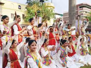 राजस्थानी महिलाओं ने अहिल्या प्रतिमा के सामने सिर पर गणगौर रख नृत्य किया।