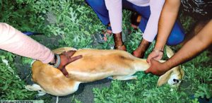इंदौर। सम्भवत: वन विभाग (Forest Department) इंदौर (Indore) की महू फॉरेस्ट रेंज (Mhow Forest Range) में यह पहली घटना है, जब किसी तेंदुए (leopard) ने लगातार 2 बार हमला कर न सिर्फ 2 गायों ( two cows) को गम्भीर रूप से घायल कर दिया, बल्कि 3 गायों को मार डाला।