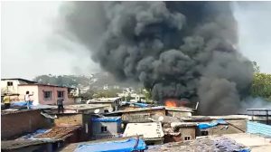 मुंबई। महाराष्ट्र की राजधानी मुंबई (Mumbai capital of Maharashtra) के घाटकोपर (Ghatkopar) इलाके में आग लगने की खबर आई है। यह घटना सोमवार सुबह की है। आग घाटकोपर (Ghatkopar) इलाके में स्थित एक गोदाम (Godown) में लगी है। दमकल की 8 गाड़ियां मौके पर पहुंच गईं हैं। आग इतनी भयानक है कि इलाके में दूर-दूर तक धुंआ हो गया है।