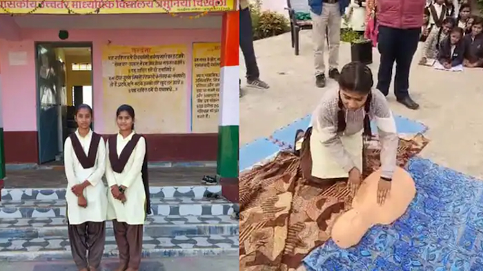 देवरी: सागर जिले (Sagar District) के देवरी के शासकीय उच्चतर माध्यमिक विद्यालय जमुनिया चिखली में स्कूली कार्यक्रम (After-school Programs) के बाद शिक्षक महिपाल सिंह ठाकुर (Mahipal Singh Thakur) को हार्ट अटैक (Heart Attack) आ गया. इस दौरान वे जमीन पर गिर पड़े, हालांकि स्कूल की छात्रा निशिका यादव (Nishika Yadav) और प्राची विश्वकर्मा (Prachi Vishwakarma) ने उन्हें फौरन देख लिया और मिलकर शिक्षक को सीपीआर (CPR) देकर जान बचाई. बताया जा रहा है कि शालेय कार्यक्रम के पश्चात शिक्षक को शाला में ही हार्ट अटैक आ गया था.