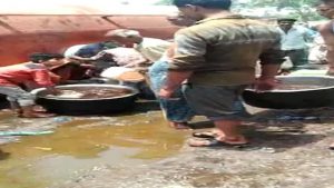 बहता तेल लूट रहे गांव वालों ने बताया आज शनि जयंती है और भगवान शनि की कृपा हम पर बरसी है. इस कारण ये तेल बरकती होने के कारण हम घर ले जा रहे हैं. गांव वालों ने अपने अपने घरों में बाल्टी, बड़े केन और अन्य छोटे बर्तनो में भी तेल भर कर रख लिया. टैंकर पलटने के बाद ड्रायवर का अब तक कुछ पता नहीं चल पाया है. क्लीनर को घायल अवस्था में जिला अस्पताल में पहुंचाया गया.