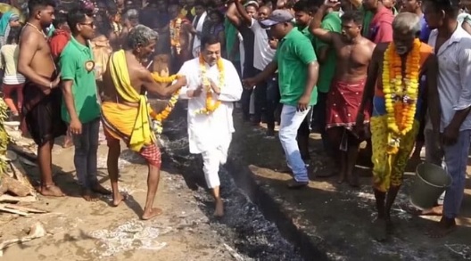 • ओडिशा में देवी पूजा में शामिल हुए संबित पात्रा, भक्त बनकर कोयले की अंगारों पर नंगे पांव चले
