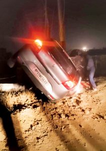 कनाडिय़ा पुलिस ने बताया कि एक हादसा संचार नगर के पास हुआ। एक युवक ढाबे से पार्टी कर कार से घर लौट रहा था, तब उसकी कार असंतुलित होते हुए दो बिजली के पोल के बीच जा घुसी। घटना के बाद कार सवार कार के अंदर फंस गया। पुलिस और राहगीरों ने उसे कार के पीछे से बाहर निकाला। उसे चोटें आई हैं। उसे उपचार के लिए अस्पताल के लिए भेजा गया है। युवक का नाम अमन बताया जा रहा है। वो शराब के नशे में था। हालांकि उसे ज्यादा चोटें नहीं आईं। बाद में पुलिस ने उसकी कार को क्रेन की मदद से थाने पहुंचाया। पुलिस दोनों मामलों में लापरवाहीपूर्वक वाहन चलाने का केस दर्ज करने की बात कह रही है।