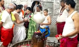 विश्व प्रसिद्ध श्री महाकालेश्वर मंदिर मे महाकालेश्वर मंदिर के पुजारी बाला गुरु द्वारा प्रसिद्ध अभिनेत्री रवीना टंडन को मंदिर के गर्भगृह में पूजन अर्चन व अभिषेक करवाया गया। बाबा महाकाल के दर्शन करने के बाद रवीना टंडन ने पत्रकारों से कहा कि नई फिल्म सफल हो यह तो हम चाहते ही हैं, लेकिन आज बाबा महाकाल से कामना किए कि सब खुशहाल रहें। और सभी का भला हो।