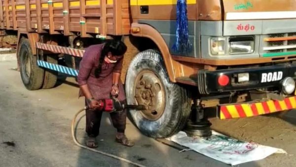अक्सर आपने ट्रकों की वेल्डिंग करते हुए या फिर पंक्चर लगाते हुए पुरुषों को ही देखा होगा। अगर इस तरह के छोटे-मोटे रिपेयर की बात होती है तो सबसे पहले पुरुषों का खयाल ही जहन में आता है। लेकिन आदिलक्ष्मी इन सभी कामों को अकेले और बेहद आसानी से कर लेती हैं। तेंलगाना में कोथागुनेम जिले के सुजातानगर की रहने वाली 30 वर्षीय आदिलक्ष्मी ऐसी महिला है जो ट्रकों की वैल्डिंग हो या फिर पंक्चर लगाना, इस तरह के कार्य अकेले ही करती हैं।