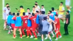 मैच हारने के बाद अफगानिस्तान के खिलाड़ियों ने भारत के खिलाफ अपना गुस्सा जाहिर किया. सोशल मीडिया पर व्यापक रूप से साझा किए गए एक वीडियो में, तीन अफगानिस्तान और दो भारतीय खिलाड़ियों को शुरू में हाथापाई बढ़ने से पहले धक्का-मुक्की करते देखा जा सकता है. हालांकि, भारतीय गोलकीपर गुरप्रीत सिंह ने दोनों पक्षों के खिलाड़ियों को शांत करने की बहुत कोशिश की, लेकिन उन्हें अफगानिस्तान के खिलाड़ियों ने धक्का दिया.
