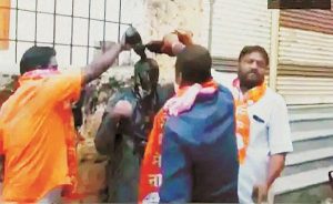 सोलापुर। सोशल मीडिया में एक वीडियो वायरल हो रहा है जिसमें कुछ लोग एक शख्स को काली स्याही से नहलाकर साड़ी पहना रहे हैं। ये वीडियो है महाराष्ट्र के सोलापुर का, और जिस शख्स को साड़ी पहनाई जा रही है वह बीजेपी का कार्यकर्ता था और उसकी गलती ये थी कि उसने उद्धव ठाकरे सरकार की आलोचना कर दी थी, बस फिर क्या था इससे शिवसैनिक भडक़ गए और उन्होंने शख्स को सबक सिखाने की सोची फिर इस करतूत को अंजाम दिया।