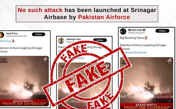 PIB ने ट्वीट में लिखा, ‘PIB ने फैक्ट: कई पाकिस्तान समर्थक हैंडल द्वारा शेयर किए गए वीडियो में यह झूठा दावा किया जा रहा है कि पाकिस्तानी वायुसेना ने श्रीनगर एयरबेस को निशाना बनाया है. #PIBFactCheck. शेयर किया गया वीडियो पुराना है और भारत का नहीं है। यह वीडियो वर्ष 2024 में पाकिस्तान के खैबर पख्तूनख्वा में हुई सांप्रदायिक झड़पों का है. प्रामाणिक जानकारी के लिए केवल भारत सरकार के आधिकारिक स्रोतों पर ही भरोसा करें. PIB ने पाकिस्तान की तरफ से शेयर की जा रही वीडियो को पुराना बताया है. असल में यह वीडियो तबका है जब पाकिस्तान के खैबर पख्तूनख्वा इलाके में सांप्रदायिक हिंसा हुई थी।