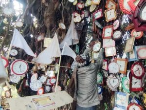 मंदिर के पेड़ पर दिवार घड़ी लटकाने से श्रद्धालुओं की मान्यता किस तरह और कैसे पूर्ण होती है और उसकी शुरुआत कब से हुई इसकी जानकारी तो किसी के पास नहीं है लेकिन कई भक्तों की यह मान्यता है कि उनका वक्त यहीं से बदला है। और जीवन में अच्छे कार्य की शुरुआत हुई है । दूर-दूर से आने वाले श्रद्धालु इस मंदिर पर मौजूद प्राचीन बड़ के पेड़ पर अपनी मन्नत मांग कर घड़ी लटका देते हैं और वह घड़ी चलती रहती है। मंदिर पास के गांव गुराडिया के रहने वाले करणसिंह आंजना का कहना है कि वे पिछले कई सालों से लगातार मंदिर में आ रहे हैं। यहां पर बड़ी संख्या में श्रद्धालु घड़ी चढ़ाने के लिए आते हैं, जिनकी मन्नत पूरी होती है, वे श्रद्धालु भी घड़ी चढ़ाते हैं, जबकि जो मन्नत लेकर आता है वह भी घड़ी चढ़ाकर जाता है इस तरह मंदिर में अभी तक लोग इतनी घड़ी चढ़ा चुके हैं कि मंदिर के पेड़ पर अब घड़ी बांधने की जगह तक नहीं है। इस मंदिर पर पेड़ से लगातार घडिय़ों टिक-टिक की आवाज आती रहती है। जब लोग इस रास्ते से गुजरते हैं तो उन्हें दिन रात टिक-टिक की आवाज सुनाई देती है। श्रद्धालुओं के अनुसार कई वर्षों से मंदिर में घडिय़ां चढ़ाई जा रही हैं उन्होंने कहा कि इसके पीछे मान्यता से ज्यादा श्रद्धालुओं का विश्वास है। इस मंदिर पर पेड़ पर लटकी हजारों घड़ीयां हमेशा इसी तरह लटकी रहती हैं। सुनसान और सुरक्षा के इंतजाम नहीं होने के बावजूद इस मंदिर से कभी घड़ी चोरी नहीं होती है। श्रद्धालु अपनी मन्नत पूरी होने के बाद भी इस मंदिर पर पहुंचते हैं तो उन्हें अपनी घड़ी सही सलामत मिलती है । आज गंगा दशमी के अवसर पर इस मंदिर पर यज्ञ एवं भव्य भंडारे का आयोजन ग्रामीणों द्वारा कराया जा रहा है जिसमें हजारों की संख्या में ग्रामीण पहुंचे।