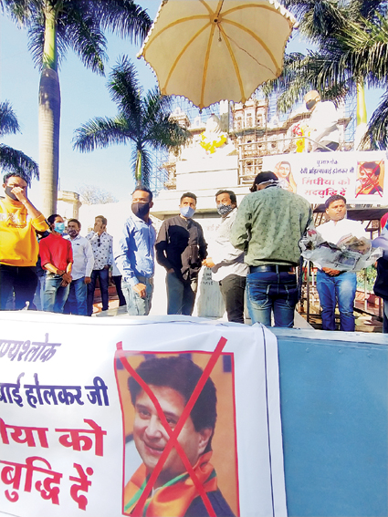 • अहिल्याबाई का नाम हटाकर मंत्री के दादाजी के नाम कर दिया चौराहा, इंदौर में विरोध प्रदर्शन