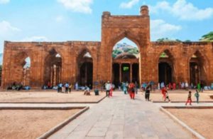 The ASI says, ‘Its construction was started by Qutbuddin Aibak around 1200 AD, with carved pillars used in the pillars… The pillared (prayer) hall is divided into nine octagonal compartments and the central arch is topped by two small minarets. The three central arches carved with Kufic and Tugra inscriptions make it a magnificent architectural masterpiece.’