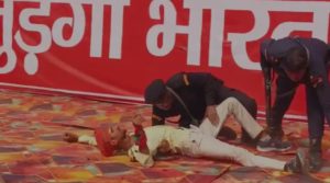 जानकारी के मुताबिक, यूपी के बलिया में सपा चीफ अखिलेश यादव की जसनसभा में एक युवक सुरक्षा घेरा तोड़ कर अखिलेश यादव से मिलने के लिए मंच पर चढ़ने वाला था. इस वाकये का वीडियो भी सामने आया है. जिसमें युवक दौड़कर आता है और छलांग लगा कर मंच पर चढ़ने का प्रयास करता है, लेकिन इसी बीच एनएसजी कमांडो उसे बहुत फुर्ती के साथ दबोच लेता है. कमांडो ने युवक को दबोच कर यूपी पुलिस को हवाले कर दिया. जिसके बाद युवक को फिर से भीड़ के अंदर भेज दिया गया.