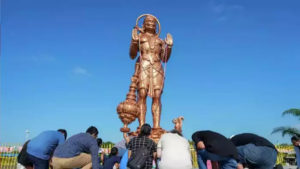 टेक्सास के शुगर लैंड का हिंदू समुदाय श्री अष्टलक्ष्मी मंदिर में ज्ञान, शक्ति, साहस और भक्ति के देवता हनुमान की 90 फुट ऊंची नई विशाल मूर्ति के बनने का जश्न मना रहा है। एक तरफ स्थानीय हिंदू समुदाय यहां दर्शन के लिए उमड़ रहा है तो दूसरी ओर कुछ स्थानीय रूढ़िवादी समूहों को ये पसंद नहीं आ रहा है। इसी के चलते रविवार को मंदिर परिसर में हंगामा देखने को मिला।