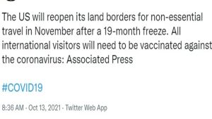 वाशिंगटन। कोरोना महामारी (corona pandemic) के कारण 19 महीने से बंद की गई सीमाओं को अमेरिका (America) अगले महीने खोलने की तैयारी में है। समाचार एजेंसी एपी न्यूज के मुताबिक अमेरिका नवंबर में गैर-जरूरी यात्रा के लिए अपनी सीमाओं को फिर से खोलेगा। लेकिन प्रवेश के लिए एक शर्त रख दी है जो है संपूर्ण टीकाकरण। यानी कि जिन अंतरराष्ट्रीय आगंतुकों को सीमा में प्रवेश करना होगा उन्हें वैक्सीन की दोनों डोज लगवानी ही होगी।