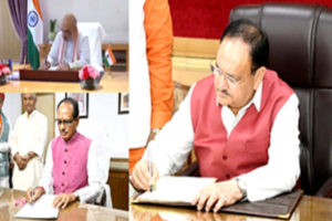 नई दिल्ली । अमित शाह, जेपी नड्डा और शिवराज सिंह चौहान (Amit Shah, JP Nadda and Shivraj Singh Chauhan) ने अपने-अपने मंत्रालय का कार्यभार संभाला (Took Charge of their respective Ministries) । अमित शाह ने नॉर्थ ब्लॉक पहुंच कर गृह मंत्री का कार्यभार संभाल लिया है। इसके साथ ही भाजपा राष्ट्रीय अध्यक्ष जेपी नड्डा ने निर्माण भवन स्थित स्वास्थ्य मंत्रालय पहुंच कर स्वास्थ्य मंत्री का कार्यभार संभाल लिया। वहीं शिवराज सिंह चौहान ने भी कृषि भवन पहुंचकर कृषि एवं किसान कल्याण मंत्रालय का कार्यभार संभाल लिया।
