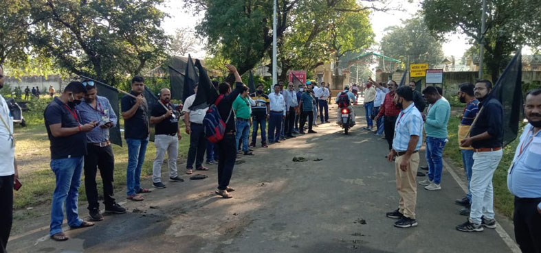 जबलपुर। देश की सुरक्षा संस्थानों का निगमीकरण किये जाने से अधिकारी व कर्मचारियों में रोष है। निगमीकरण के विरोध में पूर्व से अपना विरोध जताते आ रहे कर्मचारी यूनियनों ने आज शुक्रवार को काला दिवस मनाते हुए जमकर प्रदर्शन किया। इस दौरान कर्मियों ने ओएफके व व्हीएफजे के गेट के सामने खड़े होकर काले झंडे लहराते हुए जमकर नारेबाजी की।प्रदर्शनकारियों ने बताया कि आज देश के तमाम सुरक्षा संस्थानों का पूर्ण रूप से निगमीकरण किया जा रहा है। इसी के विरोध में देश के तमाम आयुध निर्माणी में कार्यरत कर्मचारी सुबह निर्माणी के सभी द्वारों पर जोरदार नारेबाजी किए एवं भोजन अवकाश के समय लंच बहिष्कार करते हुए निर्माणी के मुख्य द्वार के सामने धरना दिया।
