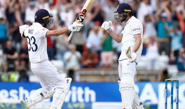 ऑस्ट्रेलिया ने अपनी पहली पारी में मिचेल मार्श के शतक (118) की मदद से 263 रन बनाए। इंग्लैंड से मार्क वुड ने 5 विकेट चटकाए। जवाब में इंग्लैंड की पहली पारी बेन स्टोक्स के अर्धशतक (80) के बावजूद 237 रन ही बना सकी। इसके बाद 26 रनों की बढ़त हासिल करने वाली मेहमान टीम ने दूसरी पारी में 224 रन बनाए। चुनौतीपूर्ण लक्ष्य का पीछा करते हुए इंग्लैंड को ब्रूक (75) और जैक क्रौली (44) ने जीत दिलाई।