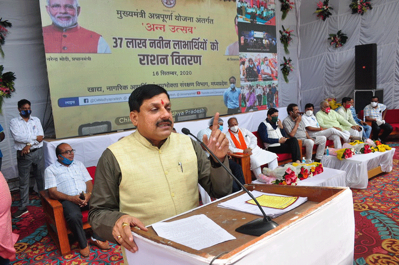 उज्जैन। प्रदेश के उच्च शिक्षा मंत्री डॉ. मोहन यादव के मुख्य आतिथ्य में राष्ट्रीय खाद्य सुरक्षा अधिनियम के अंतर्गत नवीन पात्र हितग्राहियों को पात्रता पर्ची एवं राशन वितरण का अन्न उत्सव कार्यक्रम बुधवार को आयोजित किया गया। उच्च शिक्षा मंत्री ने इस अवसर पर कहा कि राज्य शासन का उद्देश्य है कि गरीब से गरीब व्यक्ति की हरसंभव मदद होना चाहिए। गरीबों को कदम-कदम पर सहायता दी जाएगी। मुख्यमंत्री के निर्देश पर आगामी एक सप्ताह तक गरीब कल्याण सप्ताह मनाया जायेगा। उन्होंने कहा कि आंगनबाडिय़ों में अब बच्चों दूध व फल ही दिया जायेगा। इस आशय का निर्णय मुख्यमंत्री द्वारा ले लिया गया है।