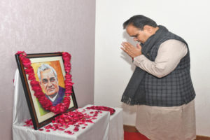 मुख्यमंत्री ने कहा कि भारत रत्न वाजपेयी की स्मृति में राज्य सरकार ने 26 दिसम्बर को प्रत्येक पंचायत समिति मुख्यालय पर अटल जन सेवा शिविर आयोजित करने का निर्णय भी किया है। साथ ही, हमारी सरकार ने ई-गवर्नेंस अवार्ड का नाम बदलकर अटल ई-गवर्नेंस अवार्ड और राजकीय विद्यालयों के कंप्यूटर कक्ष का नामकरण अटल कंप्यूटर कक्ष करने का निर्णय भी किया है।